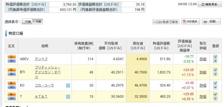 米国株運用状況(2019年4月6日現在)です。