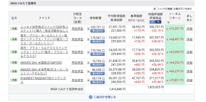 [NISAつみたて投資枠 保有中の投資信託]
